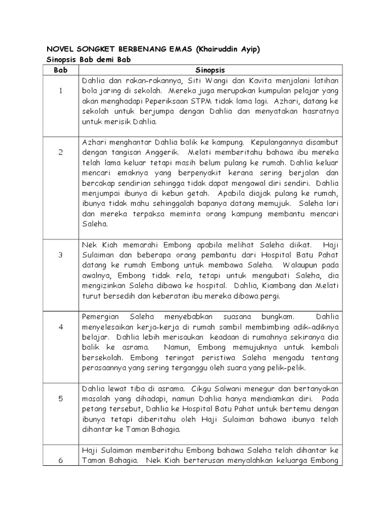 Bm Novel Docx Sinopsis Novel Songket Berbenang Emas Mengisahkan Kegigihan Dahlia Yang Memegang Peranan Sebagai Pelajar Dan Anak Sulung Dalam Keluarga Course Hero