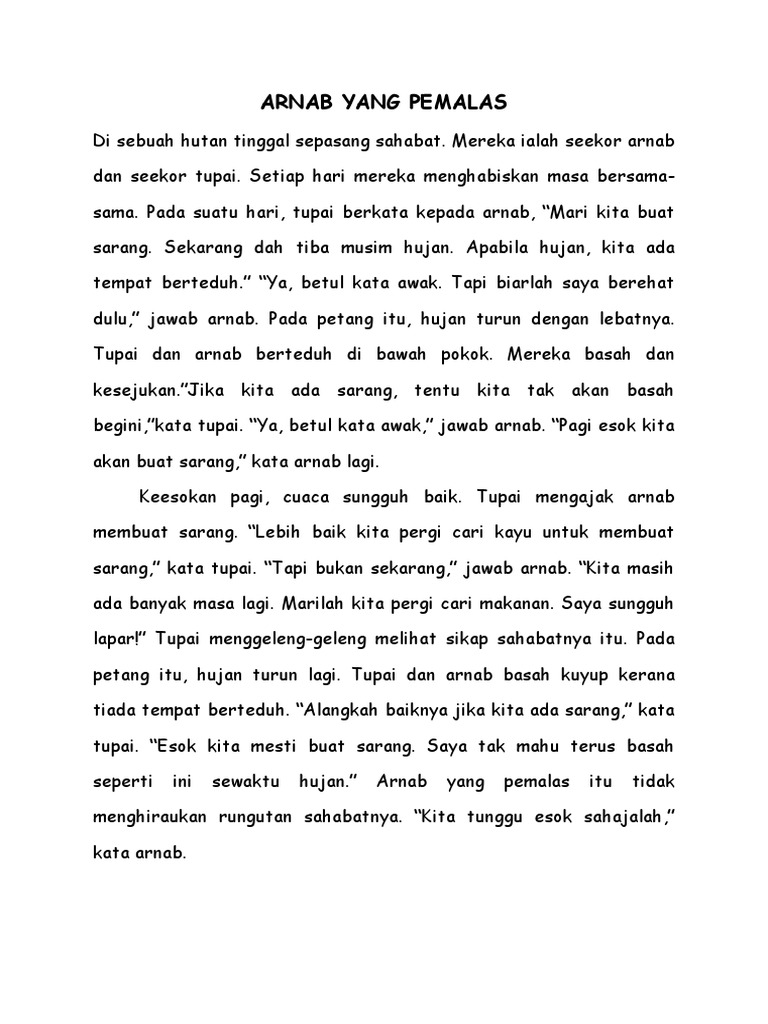. Teks cerita arnab dan buaya. Koleksi cerita kanak-kanak ini adalah berformatkan PDF dan mempunyai grafik yang menarik. Anak lelaki dan gula-gula.